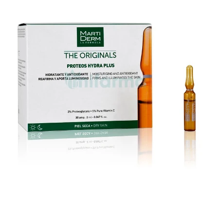 Le fiale Proteoglicani FPS idratano in modo intenso, sono antiossidanti e apportano luminosità. Contengono filtri solari in UVA/UVB che proteggono dalle radiazioni. Uno dei loro principi attivi principali sono i proteoglicani di origine vegetale, che idratano in profondità, trattengono l’acqua e possiedono delle proprietà rassodanti. Inoltre, le fiale di proteoglicani contengono anche vitamina C pura, un antiossidante essenziale che aiuta nella riparazione del tessuto connettivo e nella produzione di collagene, oltre ad esercitare un effetto depigmentante.